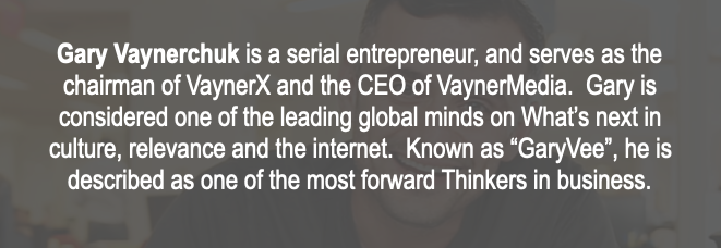 On Friday night, our VIPs will get to spend time privately with one of the top thought leaders on the internet. GaryVee will take the VIPs through his predictions and chat privately.